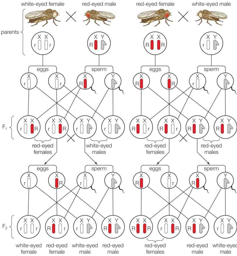 It seemed that genes were parts of chromosomes. In 1910 this idea was strengthened through the demonstration of parallel inheritance of certain Drosophila (a type of fruit fly) genes on sex-determining chromosomes by American zoologist and geneticist Thomas Hunt Morgan. Morgan and one of his students, Alfred Henry Sturtevant, showed not only that certain genes seemed to be linked on the same chromosome but that the distance between genes on the same chromosome could be calculated by measuring the frequency at which new chromosomal combinations arose (these were proposed to be caused by chromosomal breakage and reunion, also known as crossing over). In 1916 another student of Morgan’s, Calvin Bridges, used fruit flies with an extra chromosome to prove beyond reasonable doubt that the only way to explain the abnormal inheritance of certain genes was if they were part of the extra chromosome. American geneticist Hermann Joseph Müller showed that new alleles (called mutations) could be produced at high frequencies by treating cells with X-rays, the first demonstration of an environmental mutagenic agent (mutations can also arise spontaneously). In 1931 American botanist Harriet Creighton and American scientist Barbara McClintock demonstrated that new allelic combinations of linked genes were correlated with physically exchanged chromosome parts.