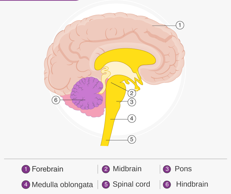 Brain diagram highlighting various parts of the human brain