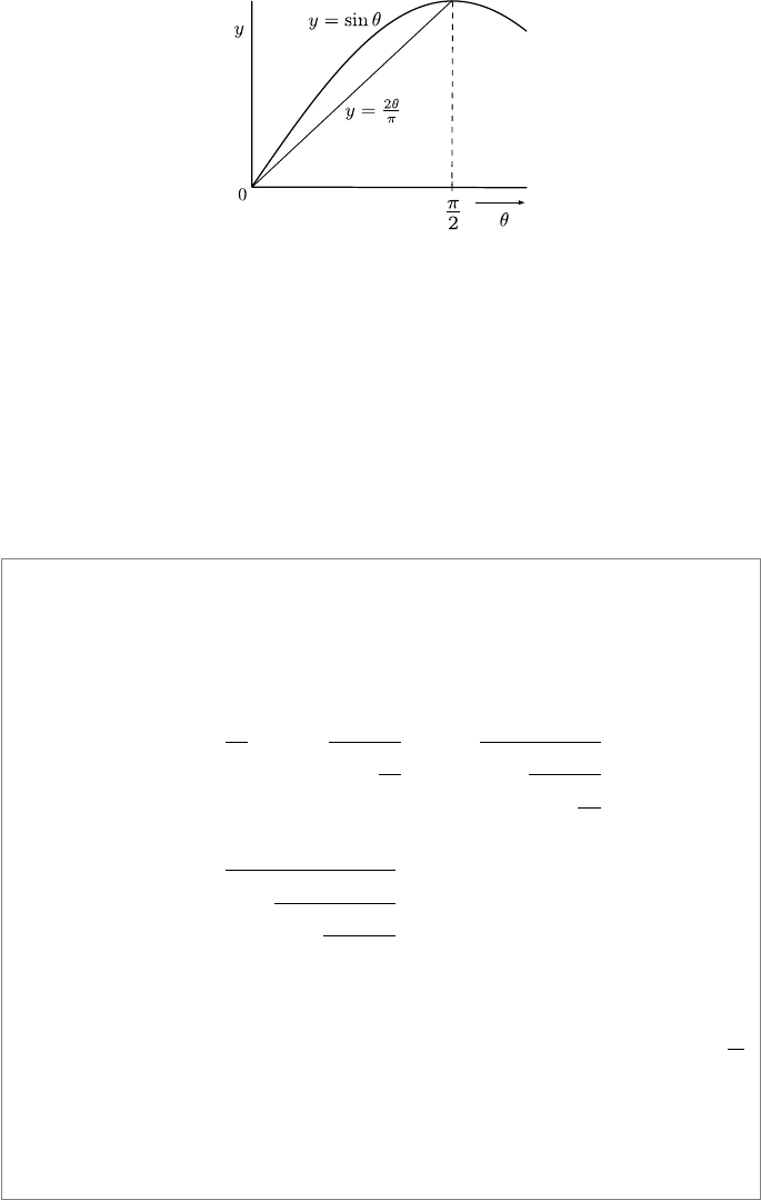 FIGURE 8.12: Graph comparing sin θ and 2θ/π.